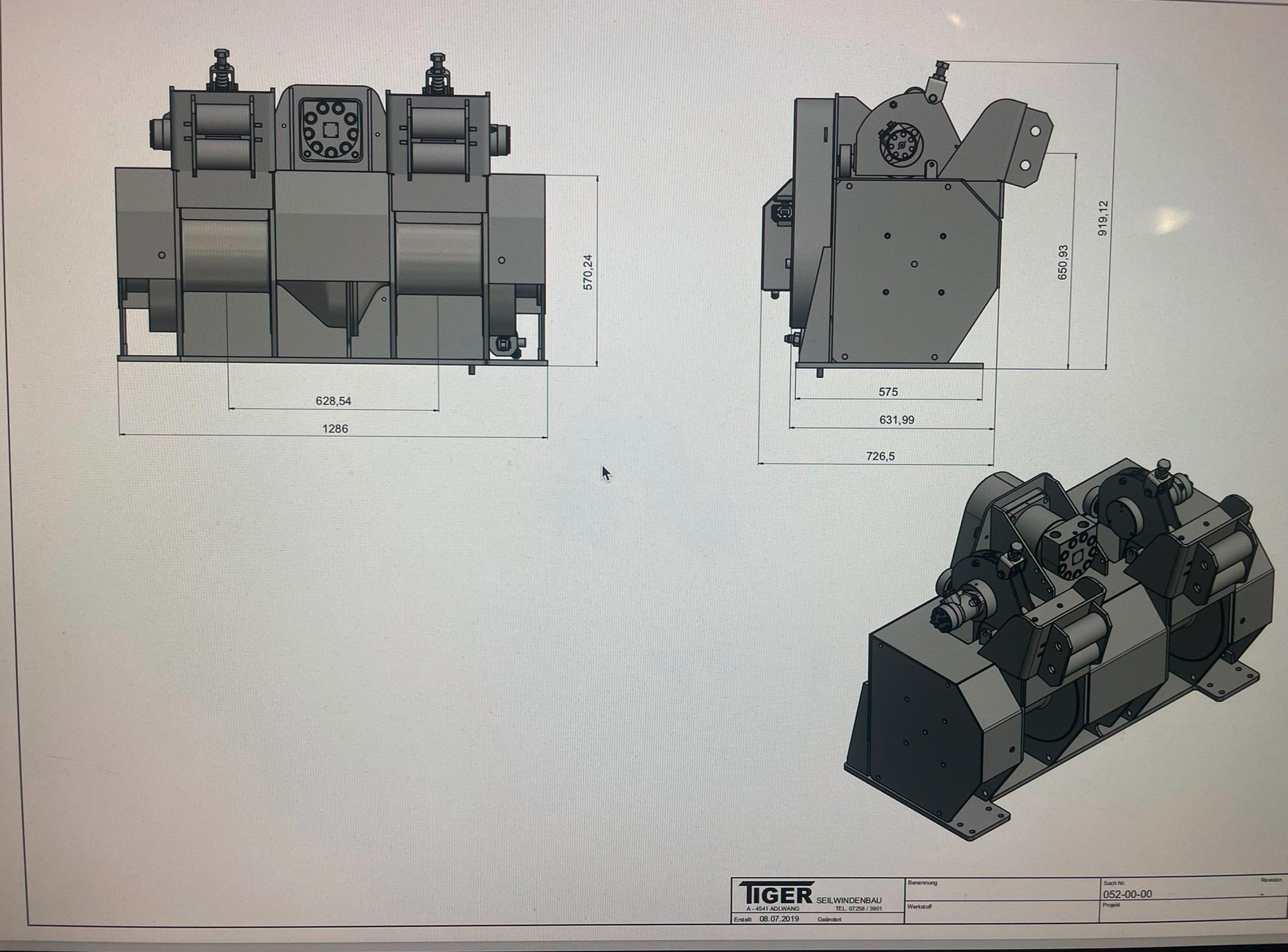 Winde / Winch / Treuil: Tiger Doppeltrommel-Seilwinde AD 140, 2 x 14 to, Hydraulischer Antrieb