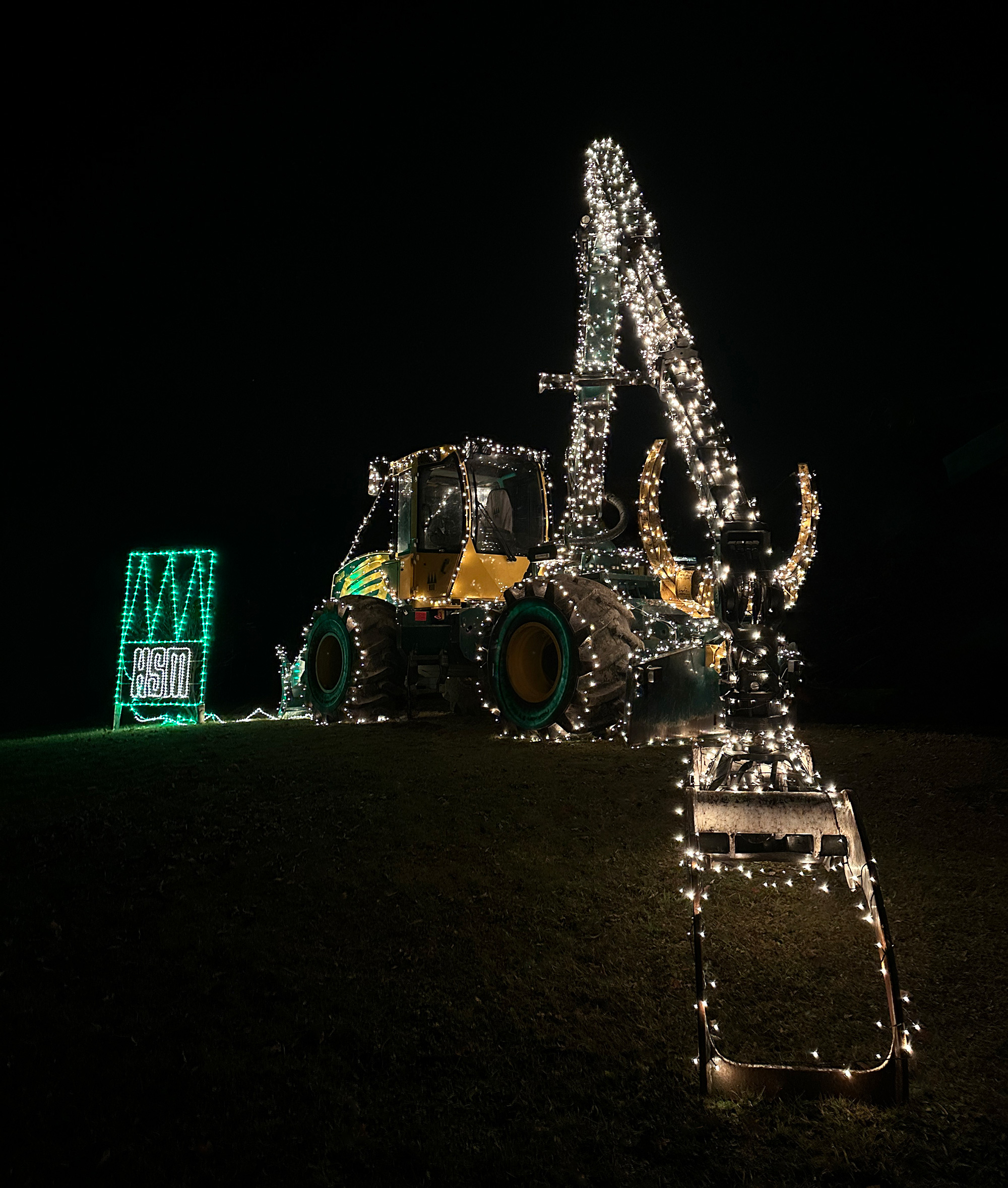 "Technik die Freude macht" in stimmungsvollem Lichterglanz. Am Standort der HSM-Niederlassung in Wolfegg wurde auch in diesem Jahr wieder mit großem Engagement der Mitarbeiter eine HSM-Forstspezialmaschine stimmungsvoll in Szene gesetzt. Für den großen Einsatz und die gelungene Präsentation bedankt sich die Geschäftsleitung sehr herzlich bei ihren Mitarbeitern.